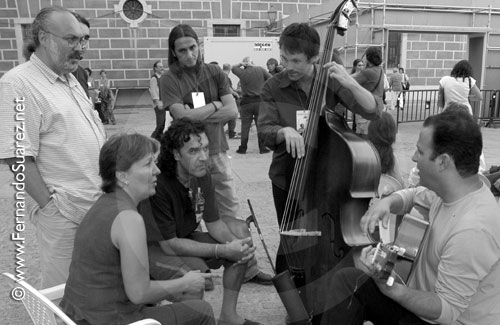 FLAMENCO anterior | siguiente GERARDO NUÑEZ Con Carmen Linares, Julio Blasco, Tino DiGeraldo y Pablo Martínez Preparando los temas para el Concierto-Homenaje a José Antonio Galicia - 2002